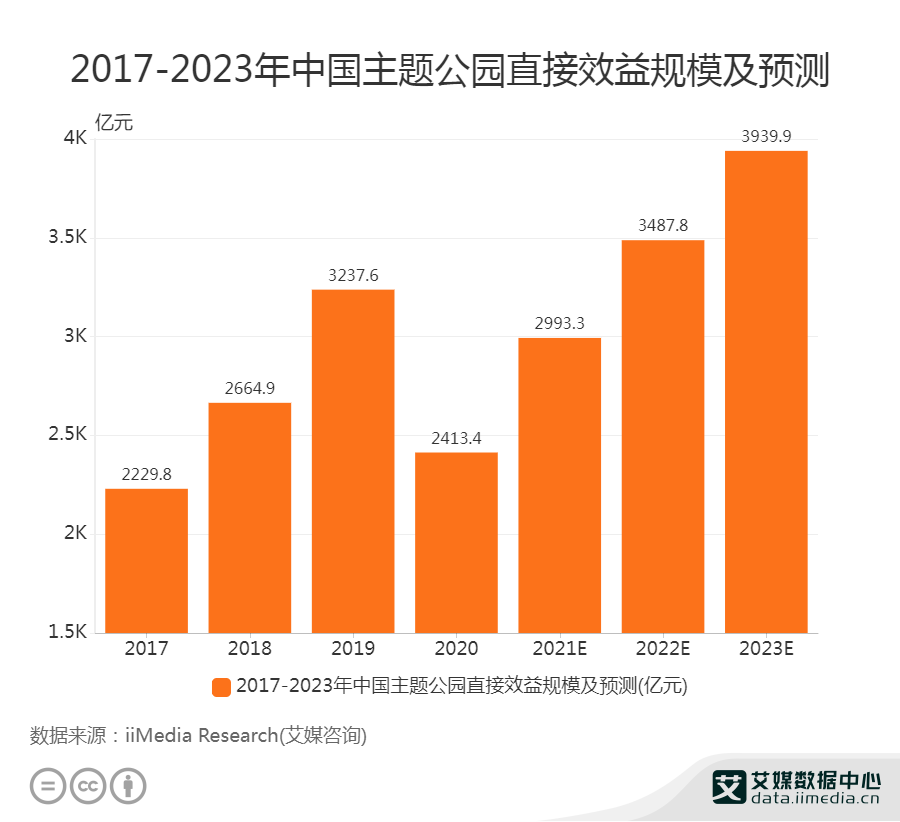 随着国内旅游产业和娱乐消费比例的提升,主题乐园也成为新的消费主战场。艾媒咨询数据分析指出,2021年中国主题公园的直接效益规模(含门票、餐饮、住宿等)预计达2993.3亿元。