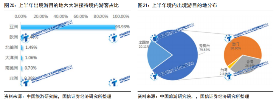 1、中国旅游研究院发布《2023年上半年出境旅游大数据报告》显示:上半年出境游目的地共计接待国内游客4037万人次。短距离的出境游率先恢复,93.95%的游客集中在亚洲地区。中国香港、中国澳门、中国台湾是出境游主要目的地,接待出境游游客共占比79.89%;东南亚接待游客占比为8.59%。