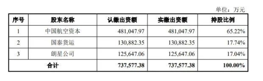 为了确保混改后的大股东地位,2020年1月,中航资本对国货航单方增资,国货航注册资本由52.35亿元增至73.76亿元,增资后,各股东持股情况如下: