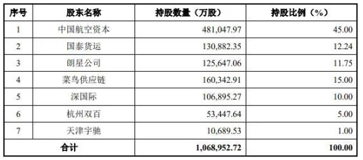 最终,包括菜鸟网络、深圳国际、国改双百发展基金和国货航员工持股平台在内的投资者,共出资48.52亿元,向国货航增资,合计占股31%。