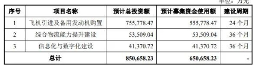 本次冲刺上市,国货航计划募资65.07亿元,其中: