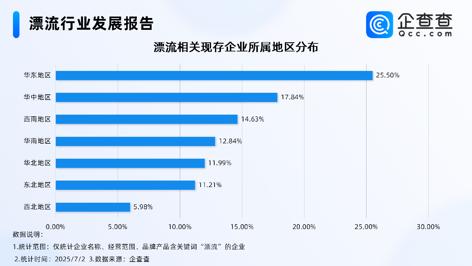 企查查数据显示,截至目前,国内漂流相关企业达3745家,主要分布在华东地区、华中地区和西南地区。从成立年限来看,超7成相关现存企业,成立年限在5年以上。从注册量来看,今年上半年已注册118家相关企业,同比增长22.92%。
