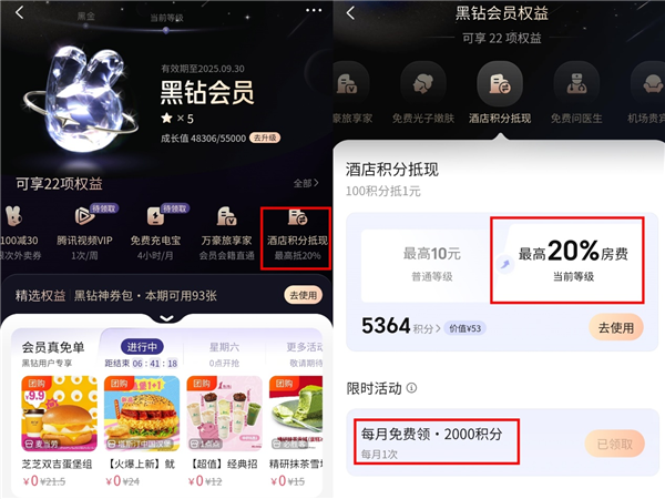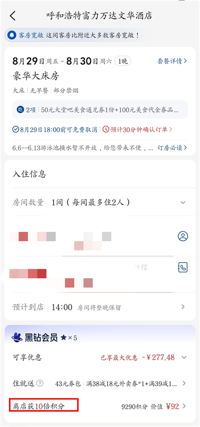 黑钻会员订酒店享积分2倍加速 游客:越订越便宜