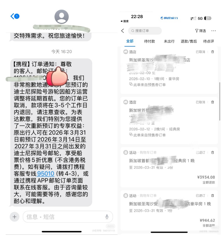 据悉,携程立即启动了保障措施,不少用户已经收到了相应邮轮退款,以及机票酒店的无损改期安排、免费取消补偿等。