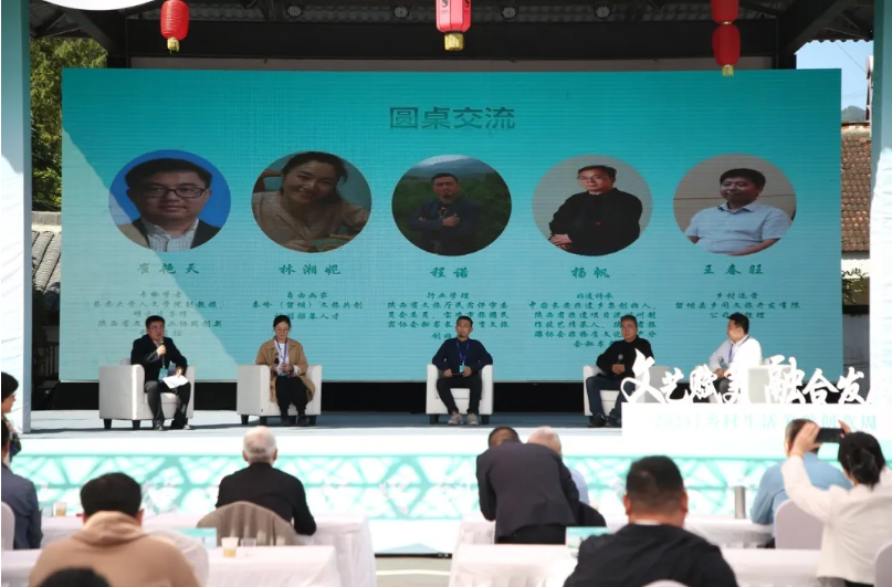 圆桌对话环节,崔艳天教授主持对话,杨帆、林湘妮、程诺、王春旺四位嘉宾围绕非遗活化、文旅共创、民宿发展、乡村文旅开发等话题展开深入交流,分享实践经验与独到见解,现场互动频繁,氛围热烈。