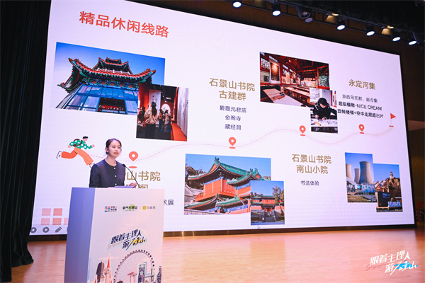 莉莉、迺山、梁子三位主理人代表分别从休闲游、工业游、文化游三个角度出发,分享了他们实地探访石景山后的创意玩法与独家秘籍。他们凭借对地区文化的深刻理解和对游客需求的精准把握,打造落地“硬核石景山 玩转首钢园”工业研学、“登燕都第一仙山 探石景山书院”赏景社交、“行摄古建 秀艺千年”非遗体验之旅,将石景山的工业遗址、历史街巷、生态景观等在地资源,转化为有温度、可沉浸的文旅产品,让“入景式”旅游体验深入人心,为石景山文旅注入了全新的创意活力。