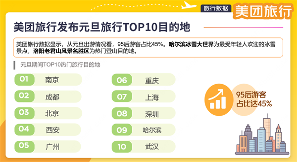 ▲美团旅行数据显示,南京、成都、北京跻身元旦旅行TOP3热门城市。