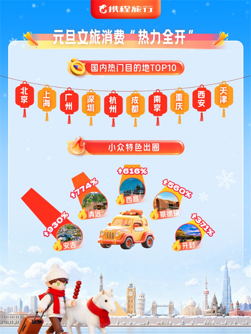 2026年元旦假期,国内旅游市场迎来强劲开局。携程最新发布的元旦旅行报告显示,文旅消费热潮全面点燃,国内景区门票预订量同比增长超4倍,入境游相关预订亦大幅提升,掀起了2026年度首个消费热潮。