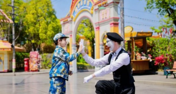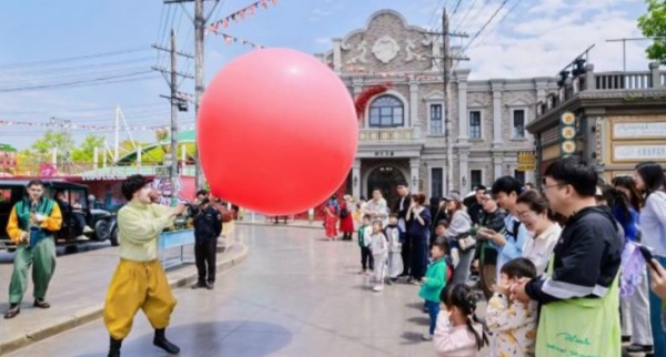 活动时间精准卡位4月18日至5月10日,覆盖整个“五一”黄金周。当"反内耗""发疯文学"成为年轻人的情绪出口,宁波方特直接喊出了"强制快乐"的口号。这不是一句空洞的营销话术,而是贯穿活动设计的底层逻辑——街头交互演艺《旅途奇遇》的小丑不在固定点位演出,而是随时抓取路人一起玩耍;来自俄罗斯的马克西姆用纯粹的模仿艺术,让素人游客瞬间成为"别人视频里的主角"。