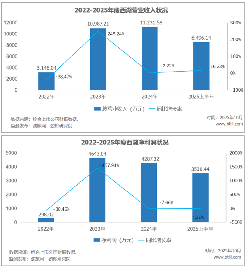 根据资料,瘦西湖2025年上半年实现营业收入8496.14万元,同比增长16.23%。归属于上市公司股东的净利润3530.44万元,同比增长4.30%。