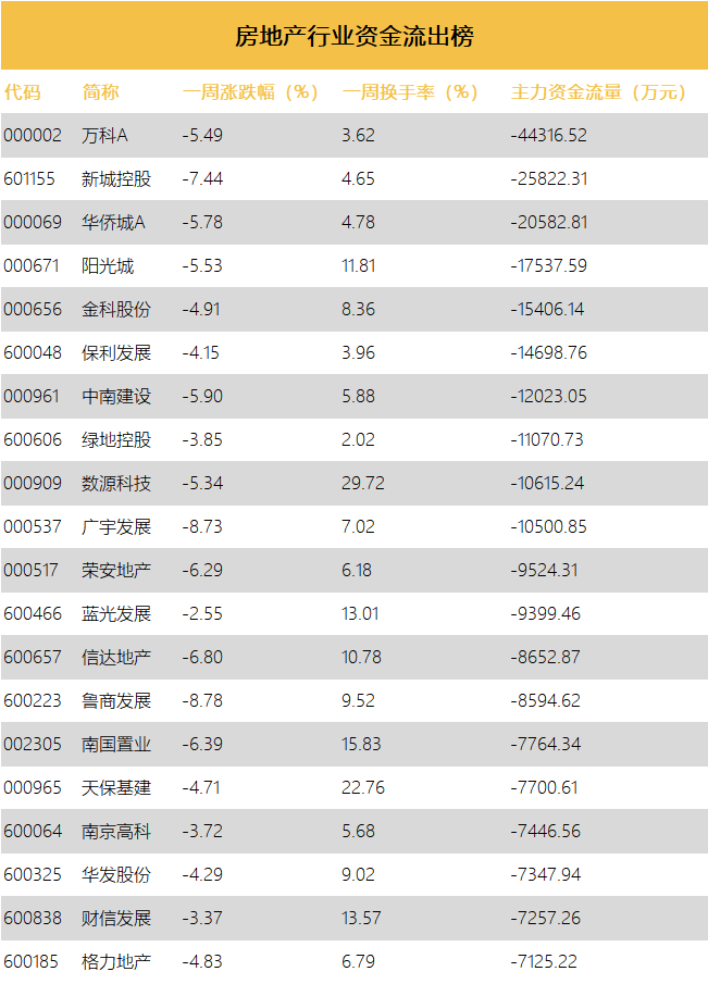 插图|房地产行业资金流出榜(2022年7月4-8日)