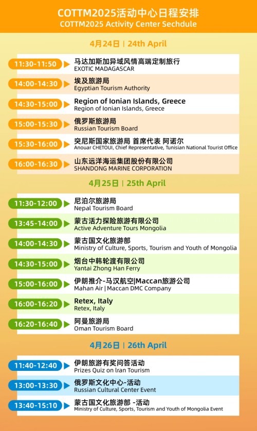 无论是金字塔下的千年传奇,还是非洲草原的野性呼唤;无论是北欧极光的浪漫邀约,还是东南亚海岛的椰风暖阳,全球文旅精华尽在 COTTM2025!