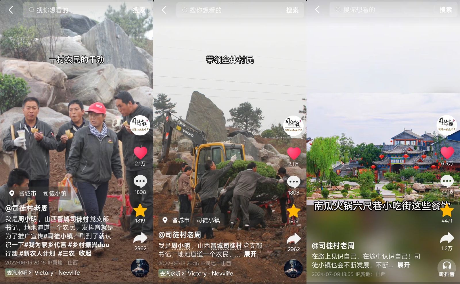 木兰花乡景区也在关注中不断打磨项目、服务,强化景区自身亮点。从@司徒村老周 到@葛天才的乡村梦,村委书记、村长、乡村旅游企业家打造个人IP正在常态化。通过让个人IP与所在村落的绑定,他们为当地乡村旅游发展带来新机会。