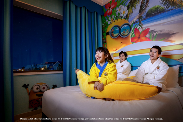 《2025亲子度假发展报告》显示,“酒店即亲子旅行目的地”的消费趋势日趋显着,而这一点在环球影城大酒店身上尤其明显。来自天津的游客王女士表示:“带娃来环球影城大酒店过生日。孩子非常喜欢小黄人主题房。酒店准备了小黄人水杯、小黄人拖鞋和浴巾,孩子开心得不得了。”