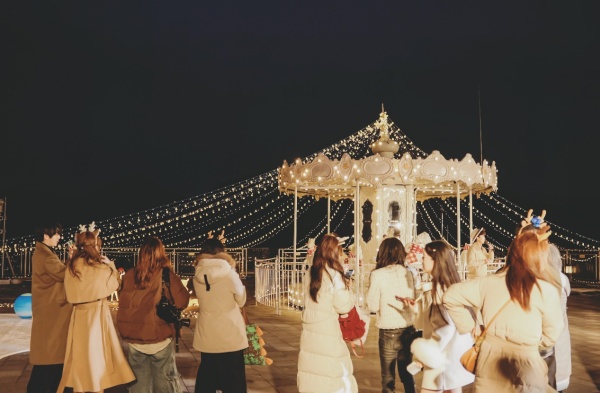 ▲马年登高许愿:美团黑钻会员体验官打卡重庆万豪酒店51层停机坪的旋转木马(摄影:韩张)