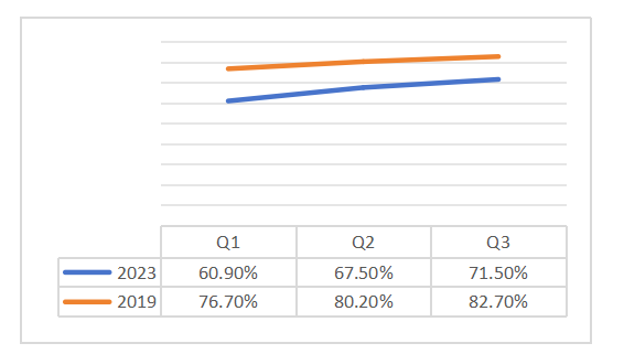 相较于华天酒店,由单体酒店起家的金陵饭店集团发展势头不错。自2007年,金陵饭店在上海证交所上市后,酒店直营业务、管理业务稳步扩张,截至2022年底,金陵饭店连锁酒店数量达到243家,覆盖国内19省94市。业绩方面,据公司三季度报告显示,前三季度营业收入为1,352,565,467.16元,同比增加27.09%。归属上市公司股东的净利润为55,288,652.33元,同比增加83.37%。