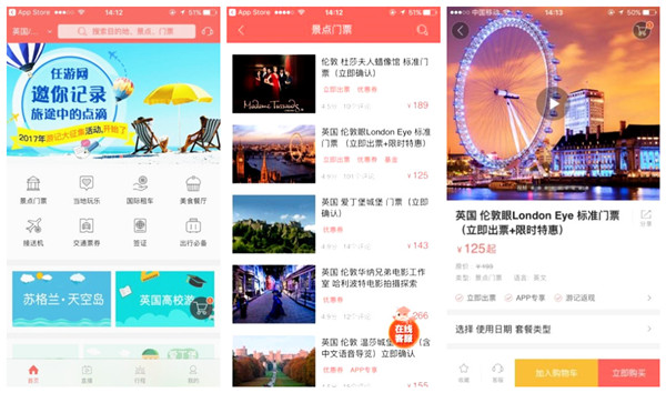 任游为消费者提供了众多知名的旅游产品,我们可以随时随地通过它去预订洛杉矶的环球影城,伦敦的伦敦眼,巴黎的卢浮宫,拉斯维加斯的KA秀蓝人秀,日本的迪斯尼乐园,也可以去澳大利亚看萤火虫,去北欧看极光,去新西兰看霍比特人故居……