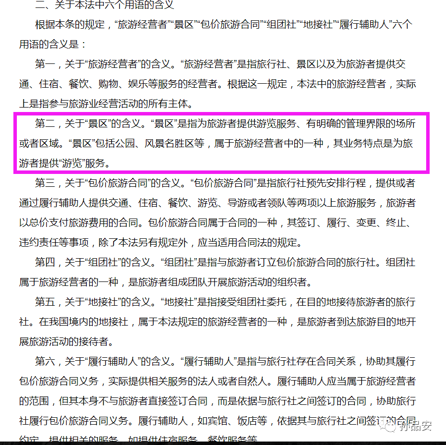 因此,《旅游法》定义的“景区”是广义的景点景区,而不是我们认知中的狭义的“观光收票景点或旅游点”。