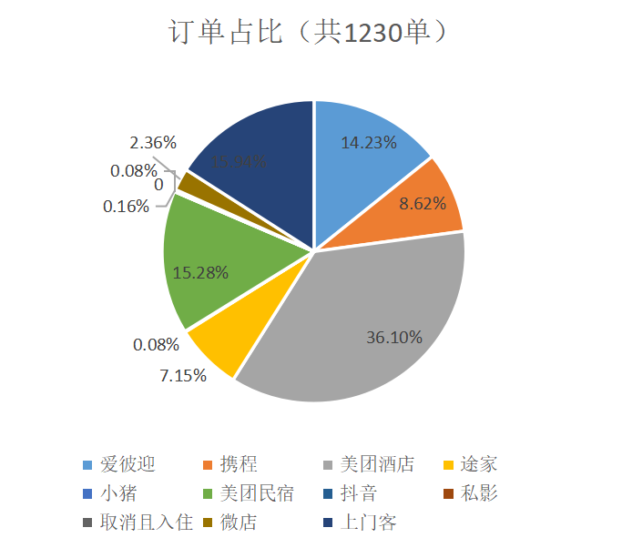 2022年4月,爱彼迎中国贡献14.23%的订单;美团民宿、携程和途家分别贡献36.1%、8.62%和7.15%。