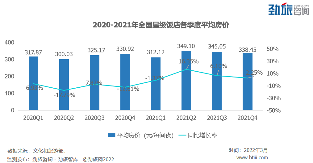 每间可供出租客房收入自2021年Q3起大幅下挫,2021年Q3和Q4同比分别下降5.47%和13.33%。