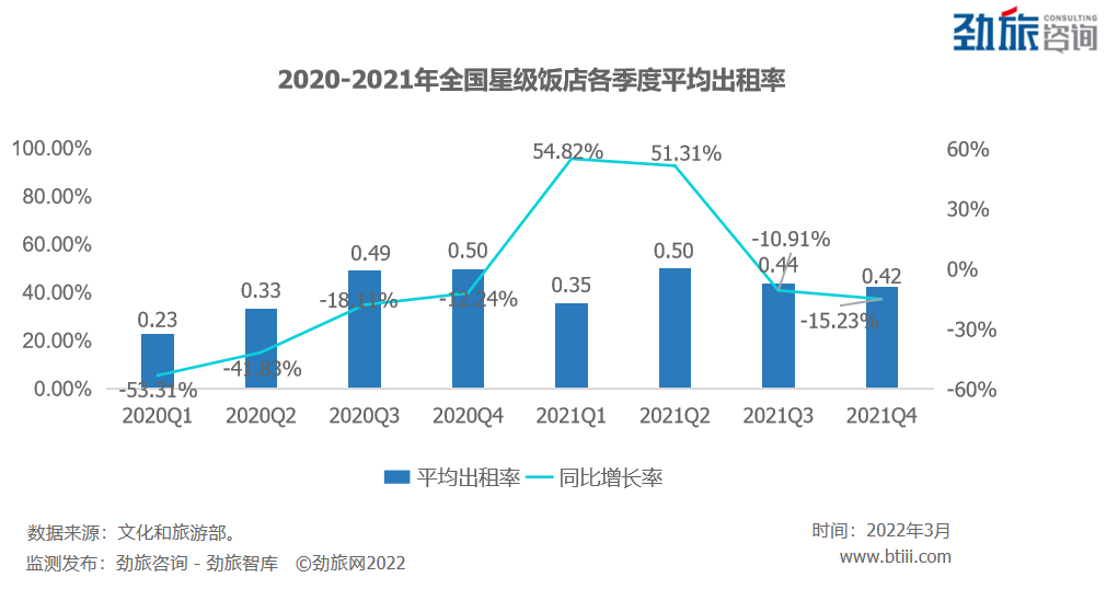 2021年Q3酒店业平均出租率仅有44%,同比不及2020年Q3的49%,甚至比不过2020年Q4的50%。