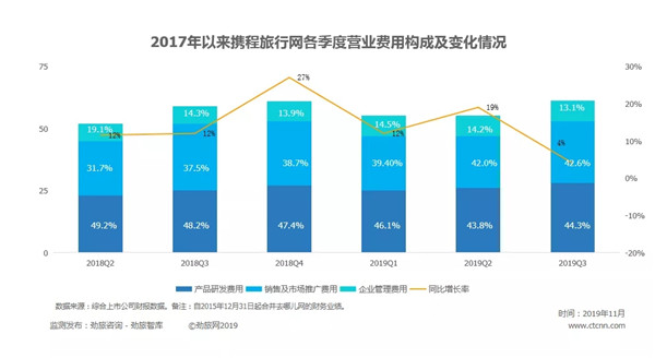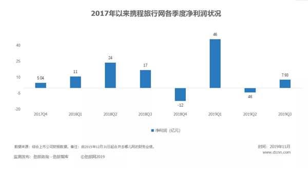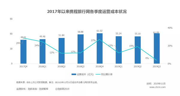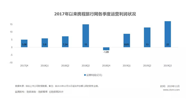 携程还披露,预计Q4净营业收入同比增长率约为8%-13%。该预期计入了近期宏观环境和行业波动,尤其是香港地区相关事件,对增长率造成的约6%-7%的影响。若不计股权报酬费用,2019年第四季度营业利润为8亿元到10亿元人民币。