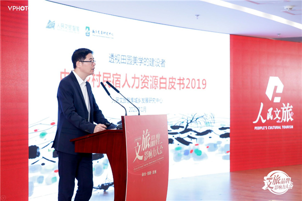 作为人民文旅旗下中国文旅融合首家新型智库,人民文旅智库在大会现场发布多项研究成果。理事长兼首席研究员吴若山发布了《透视田园美学的建设者—中国乡村民宿人力资源白皮书2019》通过对乡村民宿人力资源这一核心,为寻找乡村振兴有效路径提供思路。在《中国研学旅行发展白皮书2019》中,人民文旅智库总结了2019年研学旅行发展特征,七大特色创新案例分析,在大量调研基础上剖问题、找痛点、出对策,并就研学旅行发展趋势作出前瞻性预测。同时,继红色旅游研究中心、城乡发展研究中心、研学旅行研究中心、星空旅游研究中心之后,人民文旅智库的第5个研究中心——公共服务研究中心也在会上正式揭牌。
