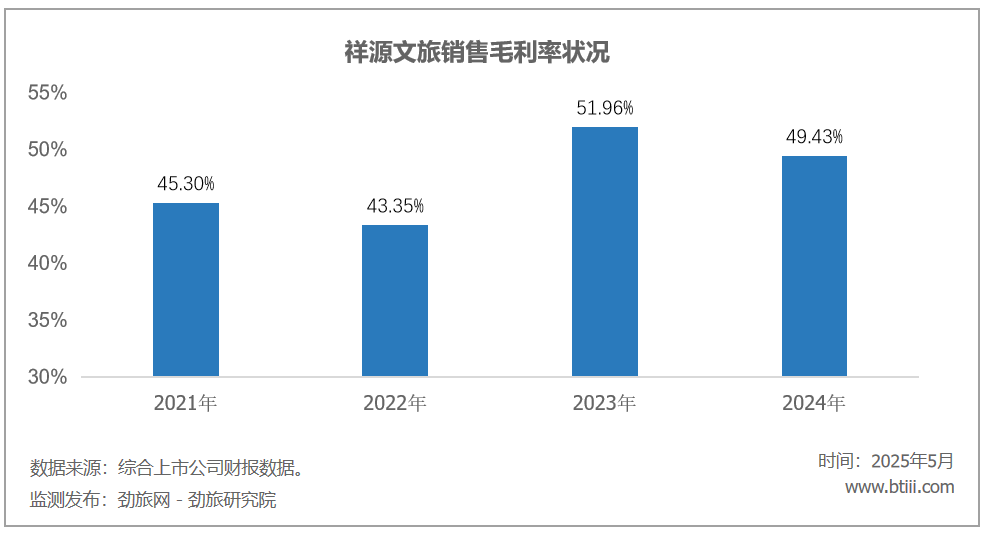2024年,销售毛利率为49.43%,上年同期为51.96%,同比下降2.53个百分点。